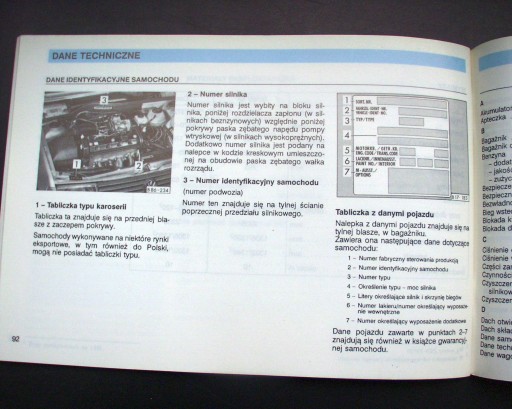 Instrukcja obsługi jest nowa (nieużywana) napisana w języku polskim i dotyczy obsługi kilku typów i opcji wyposażenia tego pojazdu. Opisuje samochody po liftingu czyli po 1990 roku produkcji. Niniejsza instrukcja zawiera informacje na temat eksploatacji, konserwacji i bezpieczeństwa Twojego samochodu. Może ona zawierać objaśnienia odnoszące się do wyposażenia, które nie jest zainstalowane w Twoim samochodzie. Spis treści instrukcji podany jest na załączonych zdjęciach. Instrukcja opisuje samochody z silnikami benzynowymi o pojemności: 1043 cm³, 1272 cm³, 1772 cm³ oraz z silnikami diesla (z zapłonem samoczynnym) o pojemności: 1391 cm³.