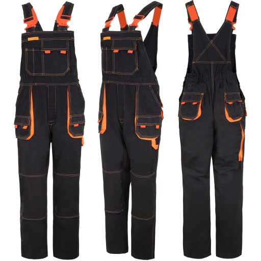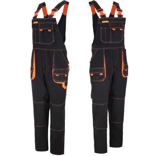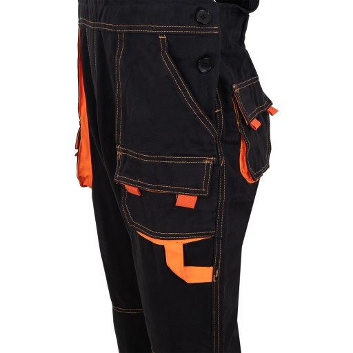 ✅ Spodnie robocze-ochronne w kolorze ciemnoszarym z pomarańczowymi elementami