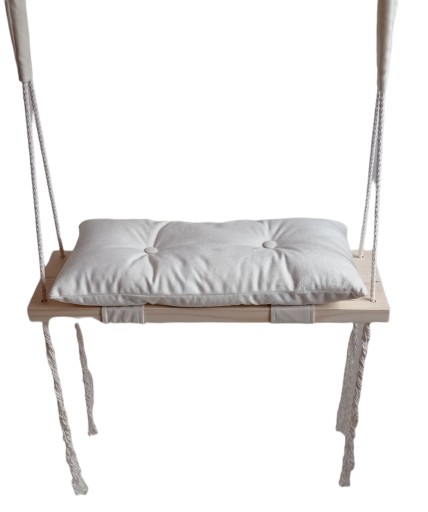 Oferujemy Państwu nową huśtawkę siedzisko na poduszce. Huśtawka wykonana jest z drewna oraz mięciutkiego materiału plusz. Huśtawkę wykonujemy samodzielnie. Jest to produkt polski.