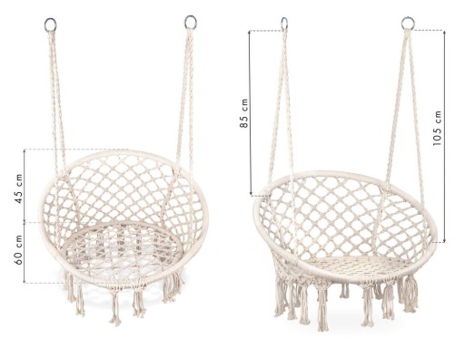 - Huśtawka ozdobiona jest dodatkowymi frędzelkami, które nadają jej niepowtarzalnego stylu.