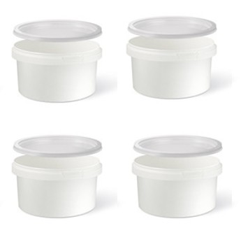 Praktyczne pojemniki plastikowe z przykrywką do mieszania i przechowywania farb i lakierów.