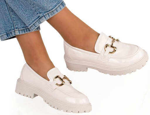 7642 KREMOWE MOKASYNY LAKIEROWANE Z ŁAŃCUCHEM 37