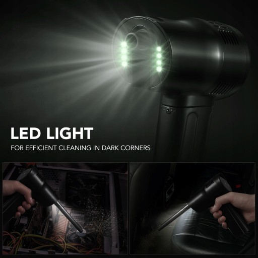 Ten produkt to wielofunkcyjny odpylacz na sprężone powietrze. Może zdmuchnąć kurz z powierzchni komputerów, klawiatur i zabawek, a także nadmuchać balony, kółka do pływania, nadmuchiwane łóżka itp. Nadaje się do czyszczenia gospodarstw domowych i czyszczenia wnętrza samochodu. Bezprzewodowa konstrukcja, łatwa w użyciu, łatwa w rozwiązywaniu różnych problemów związanych z czyszczeniem.