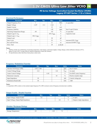 DIODES FR7420007 Ultra Low Jitter VCXO - OSCYLATOR KWARCOWY KORYGOWANY NAPIĘCIEM