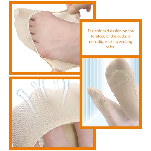 Miękka podkładka w przedniej części skarpet jest antypoślizgowa, dzięki czemu chodzenie jest bezpieczniejsze.