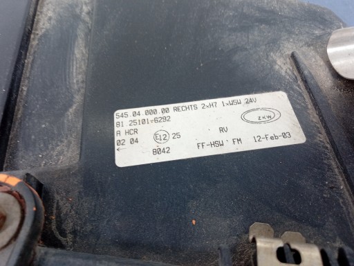 Opis: mocowania całe, zarysowania, odpryski widoczne na zdjęciach, - jakość B && MAN F2000 M2000 REFLEKTOR PRAWY H7 81.25101-6292