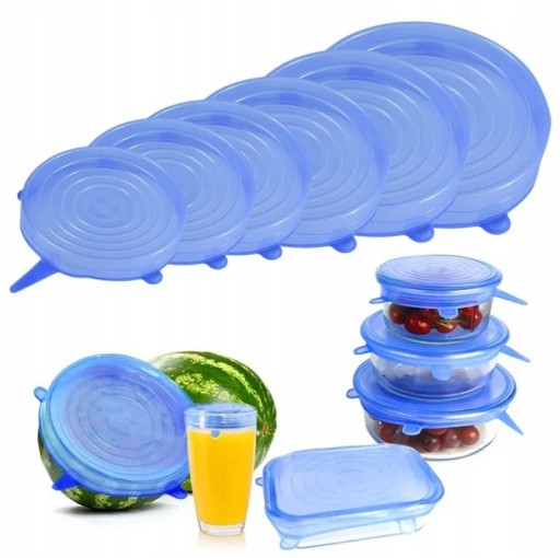 ✅POKRYWKI SILIKONOWE UNIWERSALNE DO ŻYWNOŚCI 6 SZT
