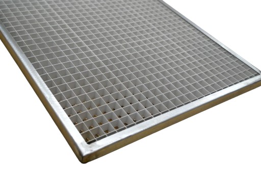 Materiał: ramka ze stali ocynkowanej, stalowa blacha perforowana oraz aluminiowa kratownica.