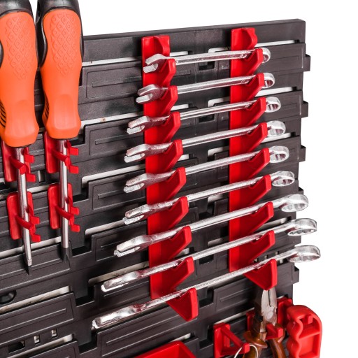 Zestaw uchwytów na klucze, imbusy oraz haczyki na młotek itp.