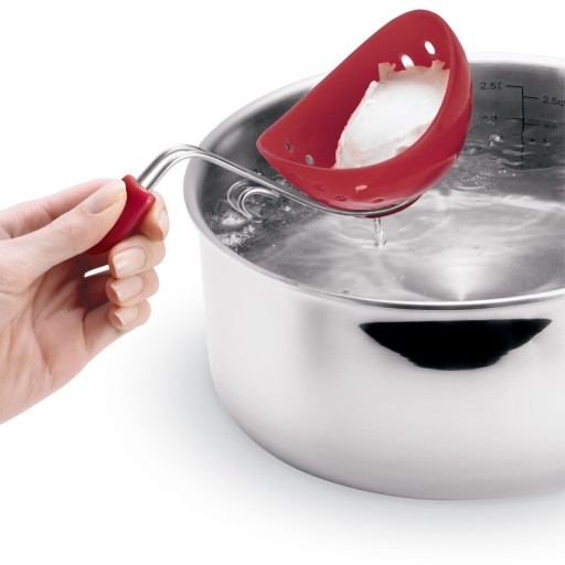 • Uchwyt w postaci haka zapewnia bezpieczne zamocowanie foremki na krawędzi garnka.