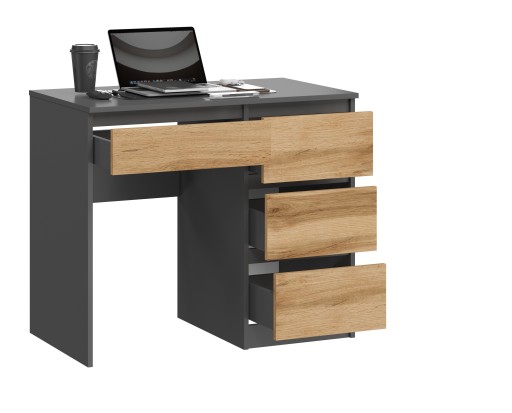 Po prawej stronie biurka znajdują się 3 pojemne szuflady