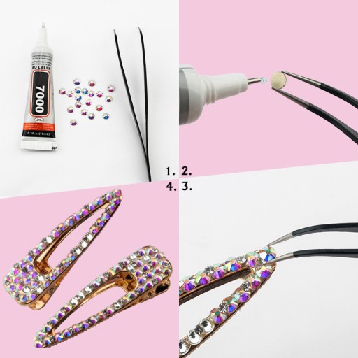 Zaaplikuj klej na wybrany obszar. Ołówkiem nałóż cyrkonie i odczekaj, aż klej całkowicie zwiąże.