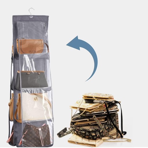🧺👗 Organizer do torebek z 8 przegródkami z włókniny, przezroczystym wykończeniem do zawieszania okien