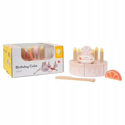 CLASSIC WORLD Drewniany Tort Urodzinowy do Krojenia Świeczki Owoce 16 el.