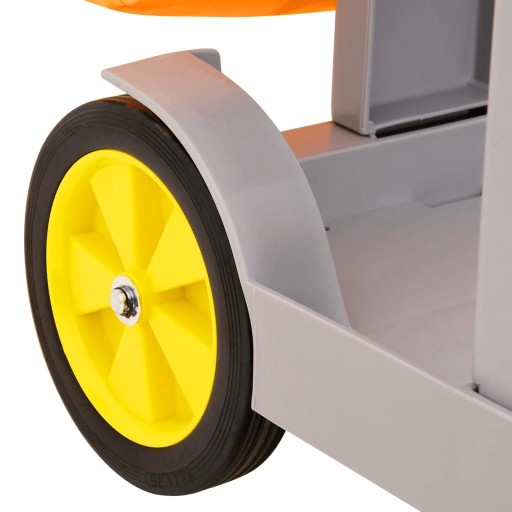 - Sporo miejsca do przechowywania: wózek ma dużą platformę z przodu, która zapewnia wystarczającą ilość miejsca na wiaderko z mopem, odkurzacz lub inne akcesoria. Trzypoziomowa konstrukcja ułatwia uporządkowanie przyborów.