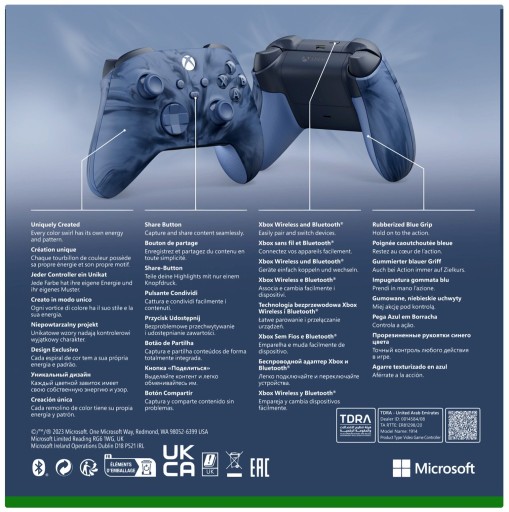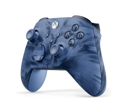 Poznaj kontroler bezprzewodowy Xbox z odważnymi, futurystycznymi, niebiesko-czarnymi wzorami o wyjątkowym wyglądzie z precyzyjnie zaprojektowanymi powierzchniami i przeprojektowanym kształtem, zapewniającym Ci większy komfort i bezwysiłkową rozgrywkę, z baterią działającą do 40 godzin*.