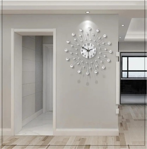 ZEGAR ŚCIENNY DUŻY STYLOWY KRYSZTAŁKI SŁOŃCE 50 cm