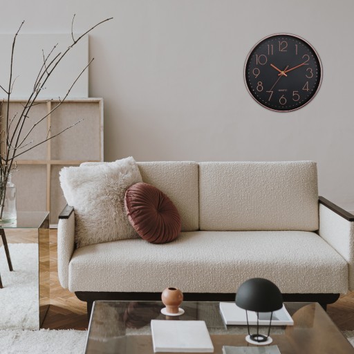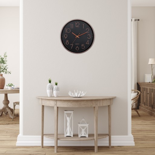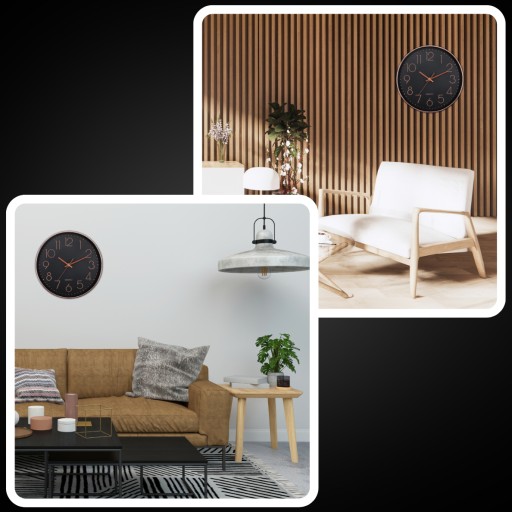 ✨Elegancja bez kompromisów: czarna tarcza z subtelnymi akcentami różowego złota dodaje klasy i wyrafinowania każdej przestrzeni.