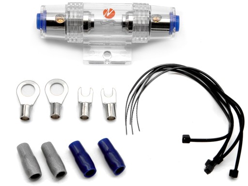 Zestaw przewodów do zamontowania wzmacniacza w samochodzie. Zestaw umożliwia szybką i profesjonalną instalację wzmacniacza.