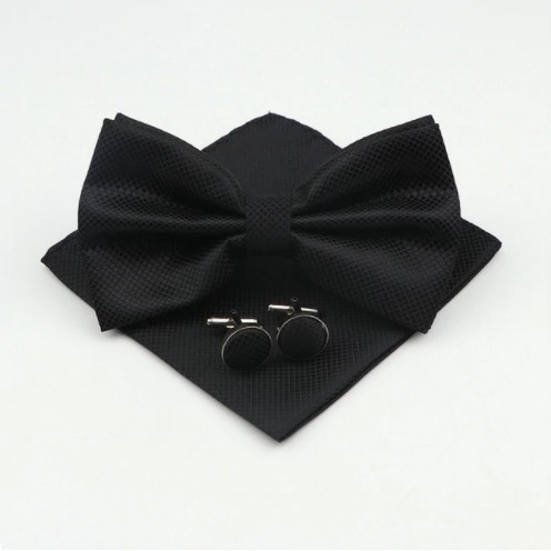 Запонки МУЖСКИЕ БАНТ, ЧЕРНЫЙ КАРМАН КВАДРАТНЫЙ