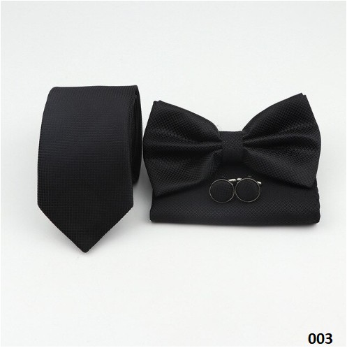 Zestaw MUCHA + KRAWAT + POSZETKA+ SPINKI w kolorze CZARNYM
