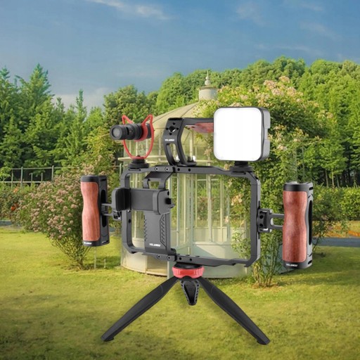 [Wysoka jakość]: Wygląd wideo smartfona bocznego uchwytu i górnego uchwytu jest wykonany z drewna ze stopu aluminium, które jest nie tylko wygodne w trzymaniu, ale także antypoślizgowe.