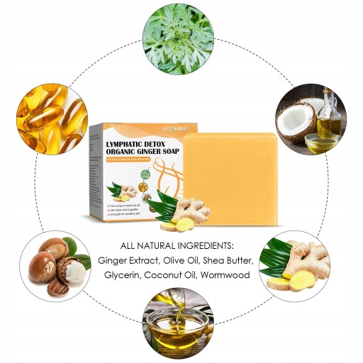 Wszystkie naturalne mydło wyrabiane ręcznie: wyciąg z czystego korzeń imbiru olejek eteryczny (imbir), naturalny smarowania czynnikiem. Pojemność: 100g, tylko zastosowanie na zewnętrz.