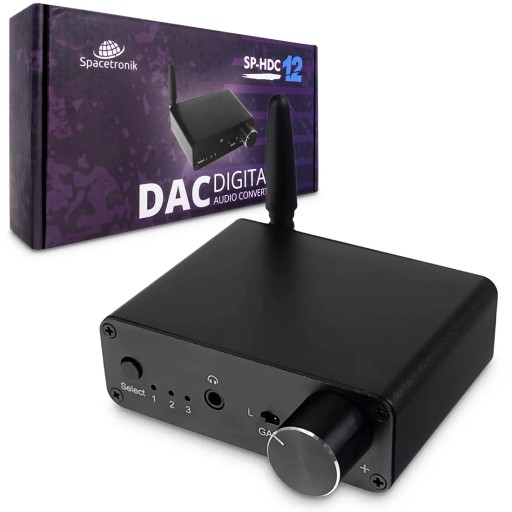 Spacetronik SP-HDC12 to konwerter z wejść Toslink, Coaxial oraz Bluetooth na analogowy sygnał audio L / R lub audio Jack 3,5mm. Urządzenie posiada przełącznik, dzięki któremu możemy wybrać sygnał na wejściu, który chcemy przekonwertować. Konwerter audio nie wymaga żadnego dodatkowego oprogramowania - działa na zasadzie Plug and Play. Urządzenie posiada pokrętło do regulacji głośności.