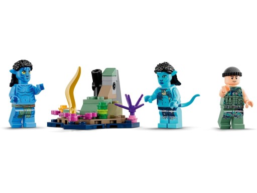 Dołącz do Lo’aka i Tsireyi podczas podwodnej przygody, gdzie złowrogi żołnierz ZPZ eksploruje dno morskie potężnym, podwodnym mechem-krabem. Trzymaj się grzbietu tulkuna o imieniu Payakan, mknąc przez wody w poszukiwaniu schronienia. Odgrywaj ulubione sceny z filmu, wymyślaj epickie historie i ekscytujące wydarzenia dzięki temu imponującemu zestawowi LEGO® Avatar.