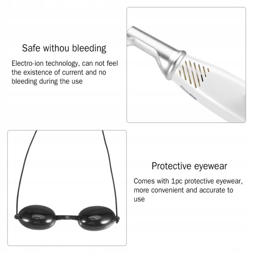 Cechy: Krótka szerokość impulsu, prawie nie wytwarza efektu światła i ciepła, bez szkody dla tkanki skórnej. Potężna i szybka energia bezpośrednio rozbija ciemny pigment, aby poprawić kondycję skóry. Dokładniejsze leczenie, brak uszkodzeń skóry, brak pozostawiania blizn. Jedna kluczowa operacja, prosta i łatwa. Krótszy czas leczenia, lepsze efekty leczenia, większe bezpieczeństwo. Lekkie i kompaktowe, delikatne opakowanie, wygodniejsze do przenoszenia. Szeroki zakres zastosowań klienta, oczywisty długoterminowy wynik, trwalszy i bezpieczniejszy. Ma zastosowanie do usuwania pieprzyków/trądzików, zmniejszania porów, rozcieńczania piegów/melaniny, mycia tatuażu/tatuażu brwi itp. Przyjdź z zestawem do naprawy skóry: maska naprawcza, liofilizowany proszek, esencja naprawcza, płyn rozwiązujący i esencja znacznie zadbają o twoją skórę po użyciu pióra laserowego.