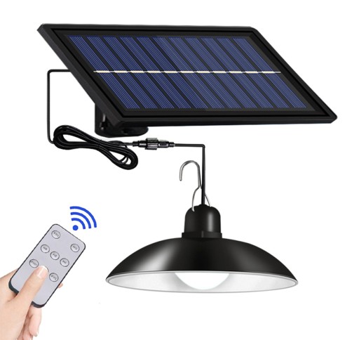 Estetyczna, wisząca lampa ogrodowa LED (żyrandol). W zestawie uniwersalny uchwyt służący do zamocowania na płocie, dachu czy elewacji. Wyposażona w jasne i energooszczędne diody LED, zasilane z wbudowanego akumulatora oraz panelu słonecznego. Nie wymaga dodatkowych źródeł zasilania. Odpinany moduł z panelem solarnym oraz długi kabel pomiędzy lampą umożliwia zawieszenie panelu solarnego w lepiej nasłonecznionym miejscu niż sama lampa. Pilot zdalnego sterowania IR umożliwia wygodną obsługę lampy.