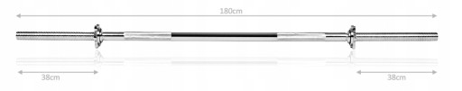 - Długość: 180cm ● Średnica: 25mm ● Waga gryfu: ~7kg
