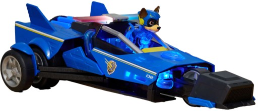 Psi Patrol The Mighty Movie Wielki Film Figurka Chase Niebieski pojazd wóz policyjny Interaktywne autko Deluxe światło dźwięk