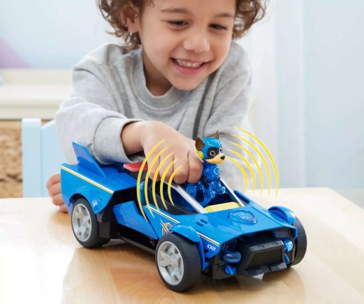 Wraz z pieskiem, w zestawie, znajduje się pojazd - krążownik. Posiada czarno-niebieską karoserię z żółtymi elementami. Po bokach samochodu widać dodatkowe, ruchome koła, które wysuwają się i dodają prędkości podczas jazdy. W autku znajduje się miejsce dla figurki. Po włożeniu jej na miejscu kierowcy i naciśnięciu, można usłyszeć efekty dźwiękowe oraz najmłodsi zobaczą świecące elementy na pojeździe.