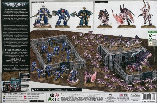 1x 72-page softcover Warhammer 40,000 Core Rules Booklet – Learn how to move your models, engage in combat, and win games. Also includes full rules for Combat Patrol games, a fast-paced, fully balanced version of the game where each side plays a pre-built army. The armies in this box can be used as full Combat Patrols for Space Marines and Tyranids.