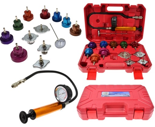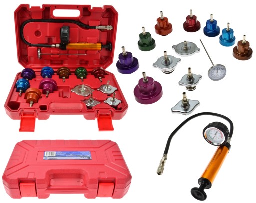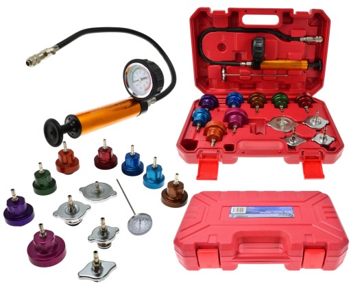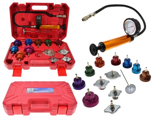 Profesjonalny tester renomowanej marki narzędziowej GEKO. Przeznaczony do pomiaru ciśnienia, temperatury oraz sprawdzania szczelności układu chłodzenia.