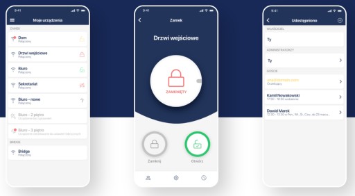 Już nie potrzebujesz tradycyjnych kluczy, które często się gubią. Wystarczy, że zainstalujesz naszą aplikację w swoich urządzeniach mobilnych aby otwierać i zamykać drzwi.