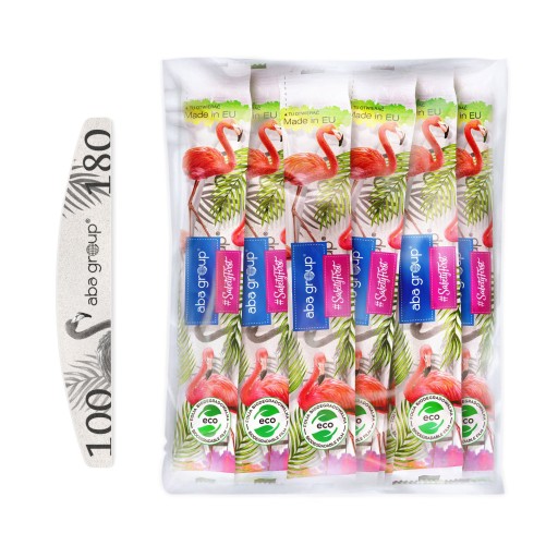 Jednorazowe pilniki do paznokci Aba Group o gradacji 100/180, dedykowane do użytku profesjonalnego. Pilniki przeznaczone są do pracy z masą żelową i akrylową, zalecane do zabiegów wymagających efektywnego, a jednocześnie bezpiecznego opiłowywania, skracania, czy też do wstępnej obróbki paznokci.