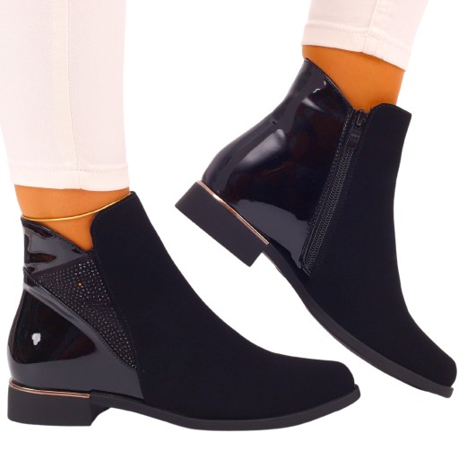 Damskie, wsuwane botki na obcasie w kolorze czarnym. W środku ocieplane miękkim futerkiem, co sprawia wygodne użytkowanie, idealne na zimę❗ Posiadają zapięcie na suwak, co umożliwia łatwe zakładanie. ❄ Stabilna, gruba podeszwa dobrze amortyzuje stopę oraz chroni przed zimnem.❄ Wykonane z dobrych jakościowo materiałów. Prosty fason sprawia, że pasują do wielu stylizacji.