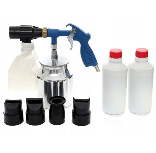 Piaskarka, pistolet do piaskowania z odzyskiem, w zestawie 2000 g ścierniwa + 4 końcówki o różnym stopniu rozpylenia!
