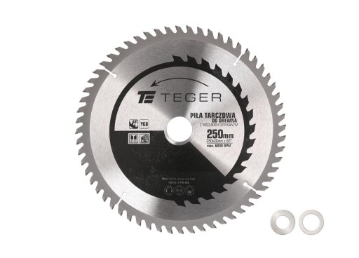 Piła tarczowa do drewna z węglikiem spiekanym 250x30x60T / TEGER przeznaczona do cięcia wzdłużnego i poprzecznego drewna litego, sklejki, płyt wiórowych, płyt laminowanych i MDF, materiałów drewnopodobnych i kompozytowych. Zęby widiowe z węglikiem spiekanym zapewnia długą żywotność tarczy przy intensywnej pracy.