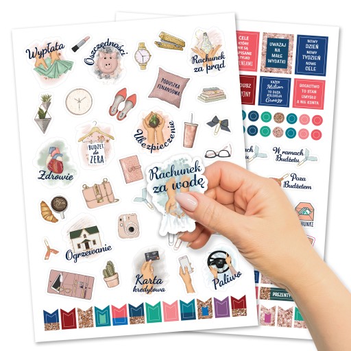 - Aby jeszcze bardziej usprawnić planowanie finansów, zestaw zawiera również 2 arkusze A5 z 139 naklejkami specjalnie przygotowanymi do wsparcia budżetowania i zarządzania finansami domowymi.
