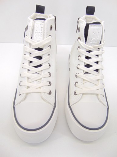 Producent – Big Star Kolor – biały Cholewka – wykonana z materiałów sztucznych, które pochodzą z recyklingu – eko skóra środek ocieplony Podeszwa – gruba wysokiej jakości tworzywo - guma Wkładka – buty posiadają miękką wkładkę, zapewnia to komfort dla stóp. Wysokość obcasa/platformy – 3,5 cm