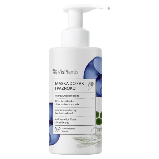 Skoncentrowana formuła maski intensywnie nawilża, wygładza i regeneruje suchą i szorstką skórę. Pielęgnuje i wzmacnia paznokcie i skórki. Chroni skórę przed wysuszaniem i działaniem szkodliwych czynników zewnętrznych. Filtrat śluzu ślimaka, oliwa z oliwek i mocznik łagodzą podrażnienia i opóźniają procesy starzenia.