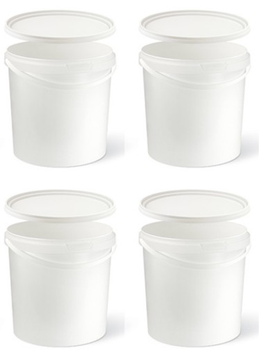 Praktyczne pojemniki plastikowe z przykrywką do mieszania i przechowywania farb i lakierów.