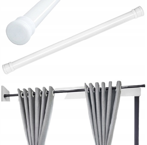 Drążek bez wiercenia, w wygodny i nieuciążliwy sposób umożliwia zamocowanie rurki w łazience do zasłon prysznicowych, salonie do firanek i zasłonek bądź jako drążek do wieszania ubrań.