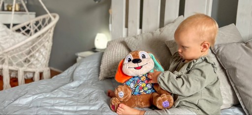 Łapka opowiada i śpiewa dziecku czym jest Zaskoczenie, Dziecko poznaje kolor żółty i kształt gwiazdy :)