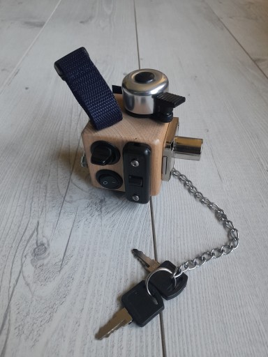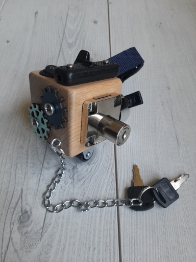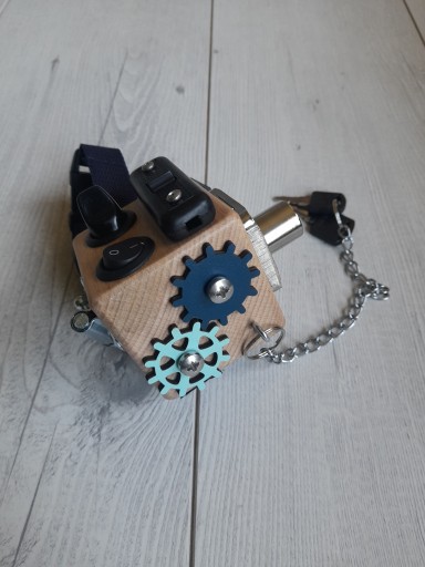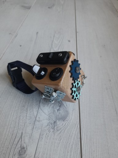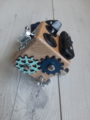 Kostka manipulacyjna EDUKACYJNA z przełącznikami zabawka drewniana