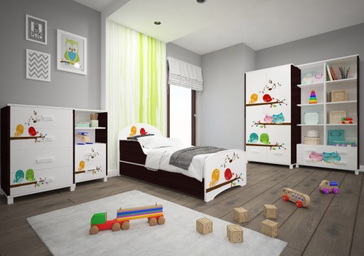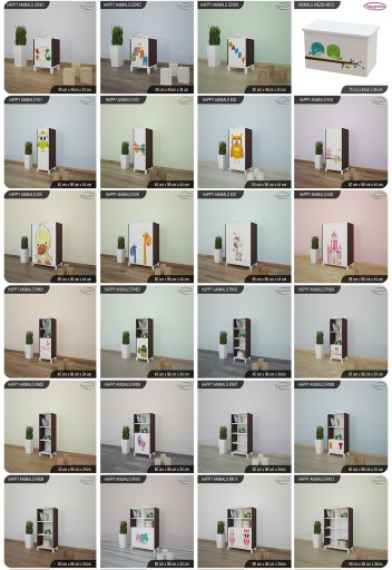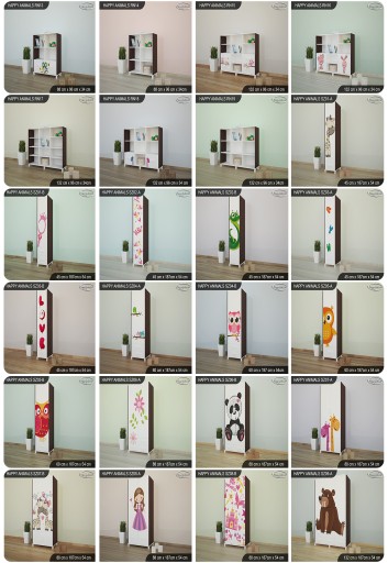 Mogą Państwo wybierać spośród prawie 90 modeli mebli (szafki nocne, kufry na zabawki, komody, regały, szafy, biurka, półki) przeznaczonych do dowolnego zaaranżowania pokoju dziecka.