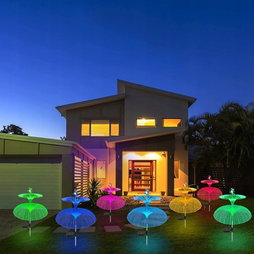 Elegancki i niepowtarzalny design: Ta solarna lampa uliczna do trawnika została zaprojektowana w kształcie meduzy. Gdy światła uliczne są „włączone” w nocy, 7 kolorów zmieni się automatycznie. Projektuje piękne wzory do dekoracji trawnika lub chodnika, ogrodu, patio, drzew, kwiatów, kwietnika, ogrodzenia, trawnika, ścieżki, kempingu, oczka wodnego, lampy krajobrazowej.